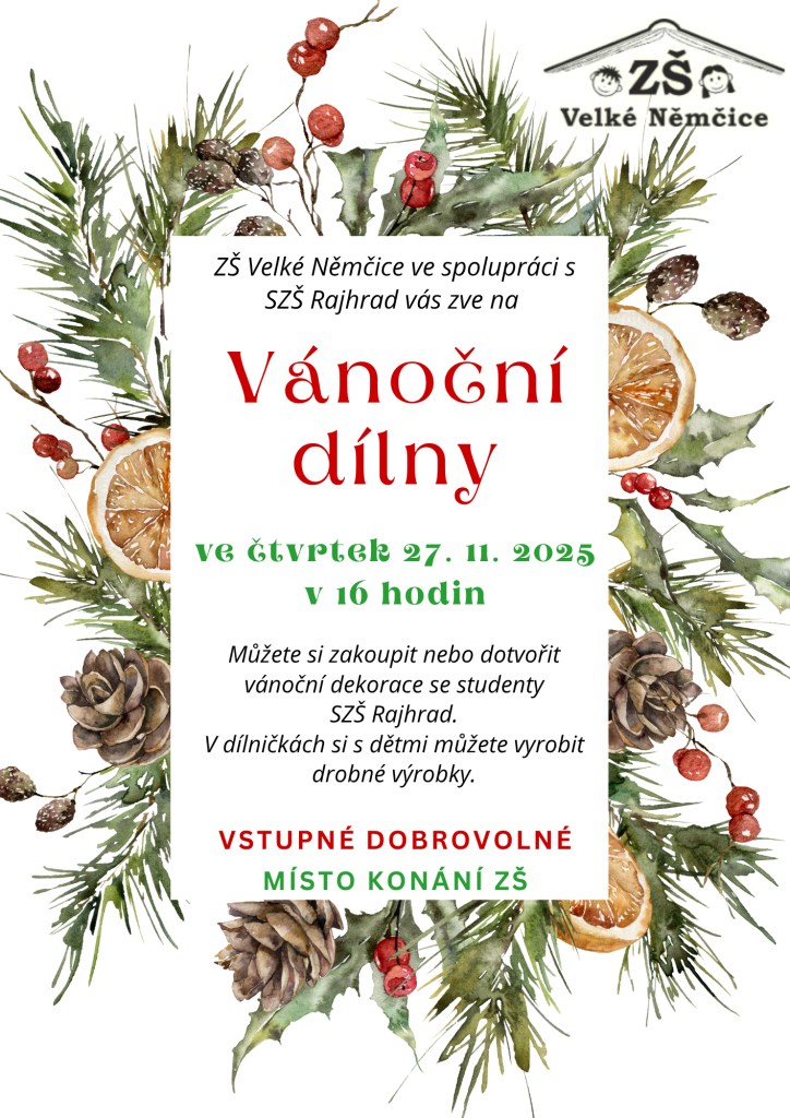 Vyučování v pátek 19. 12. 2025 končí na I. stupni po čtvrté vyučovací hodině, na II. stupni po páté vyučovací hodině.
